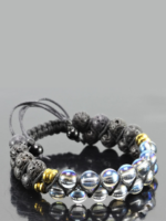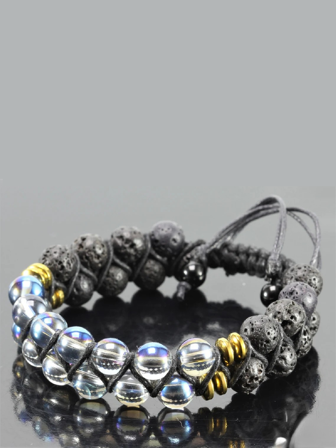 Стилна гривна с естествени камъни Вулканичен камък и натурален Кварц.