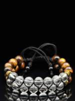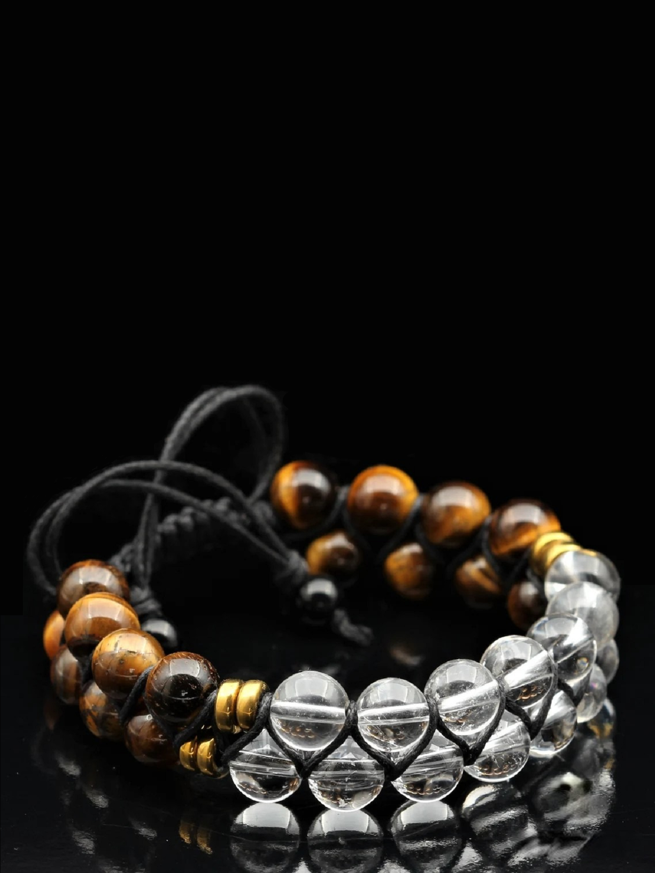 Стилна гривна с естествени камъни Тигрово око и натурален Кварц.