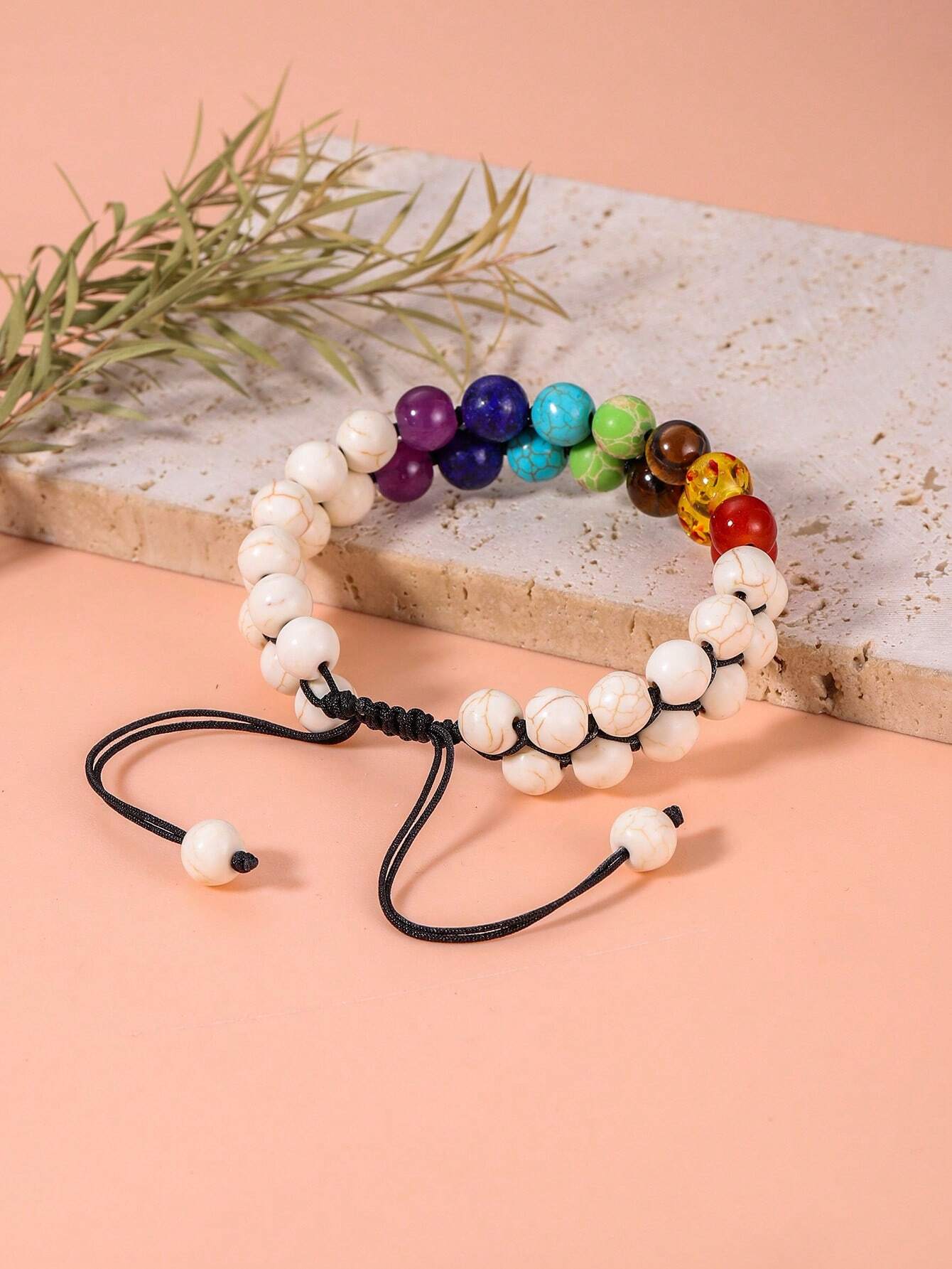 Стилна дамска гривна с микс от естествени камъни Хаулит бял, Аметист, Лапис Лазули, Хаулит син, Тюркоаз зелен, Тигрово око, Кехлибар и Карнеол.