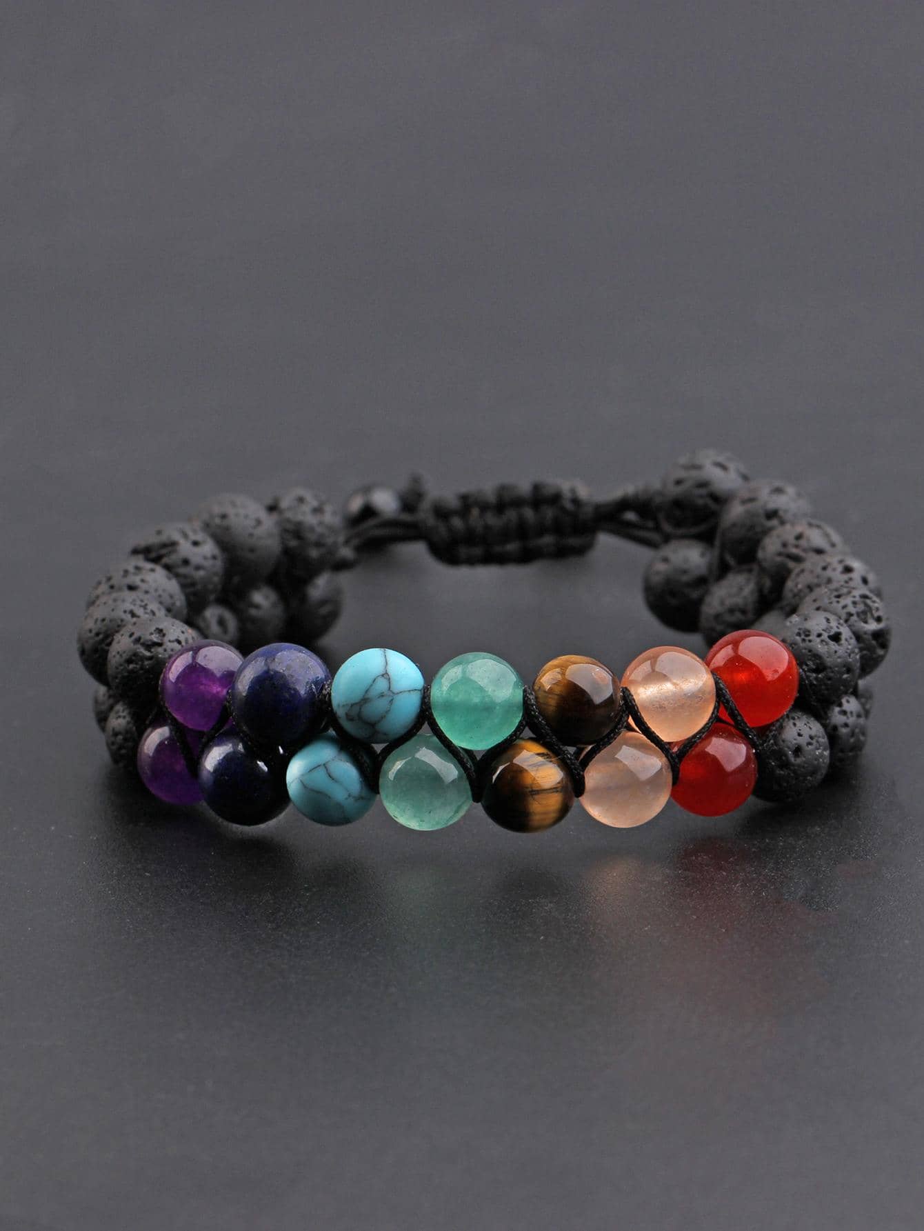Стилна дамска гривна с микс от естествени камъни Хаулит бял, Аметист, Лапис Лазули, Хаулит син, Тюркоаз зелен, Тигрово око, Кехлибар и Карнеол.
