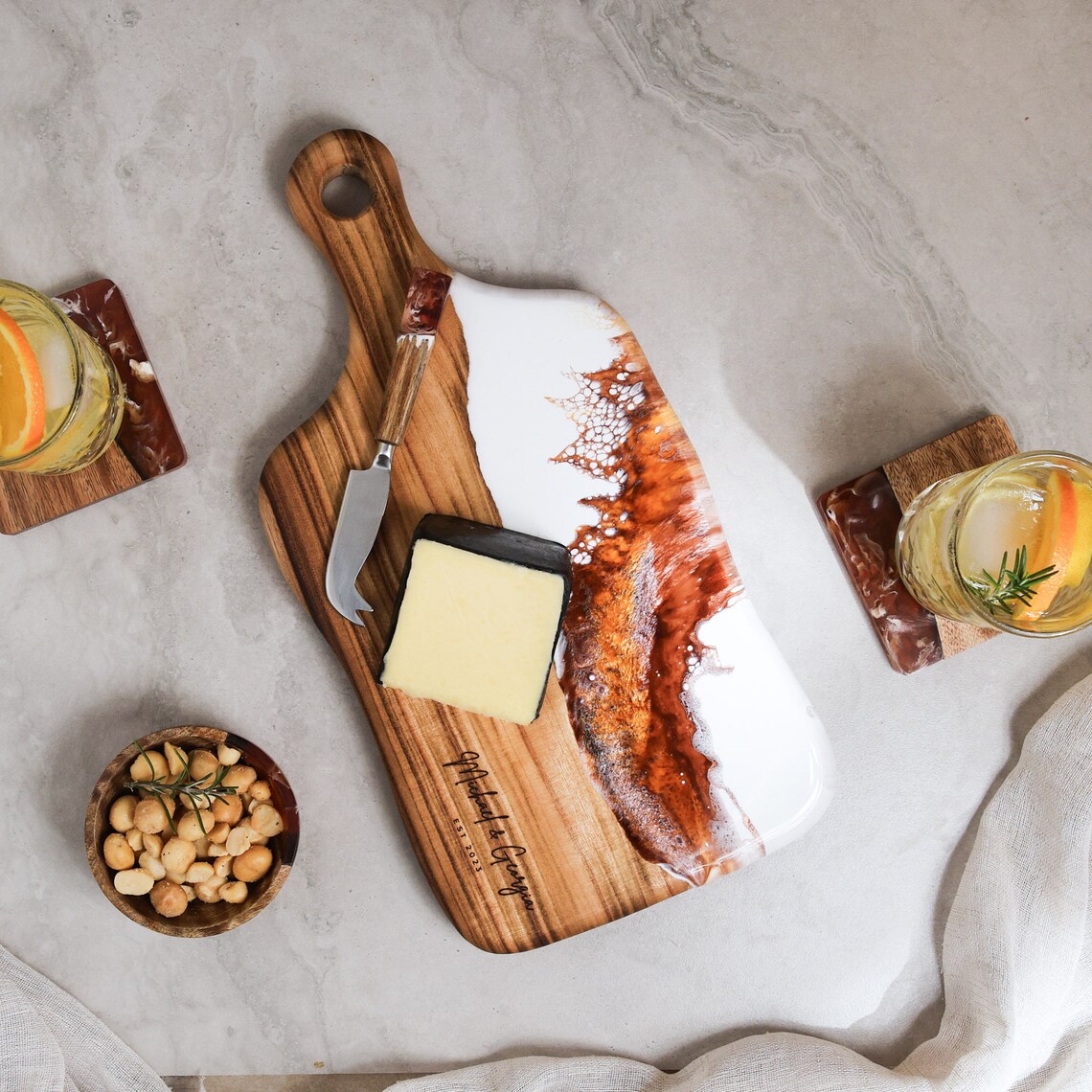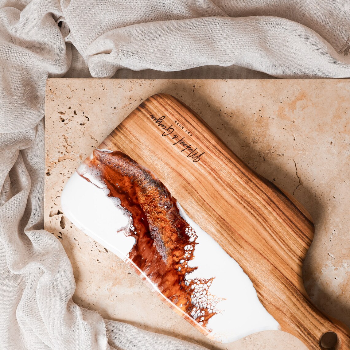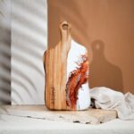Кухненски борд изработен от епоксидна смола и маслиново дърво.