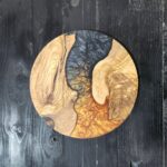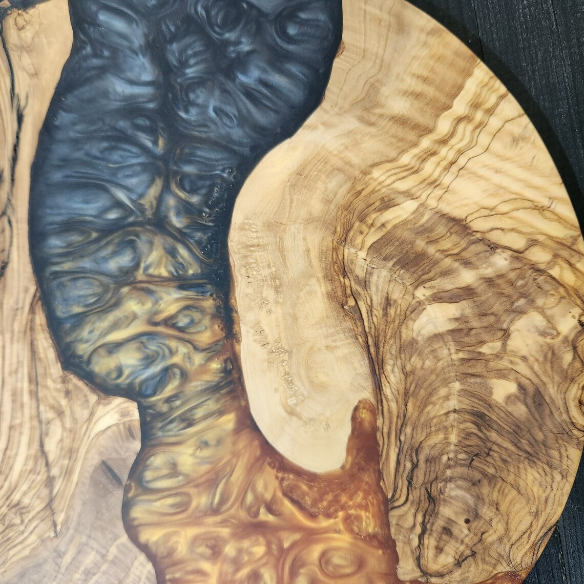 Кухненски борд изработен от епоксидна смола и маслиново дърво.