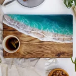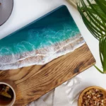 Кухненски борд изработен от епоксидна смола и маслиново дърво.