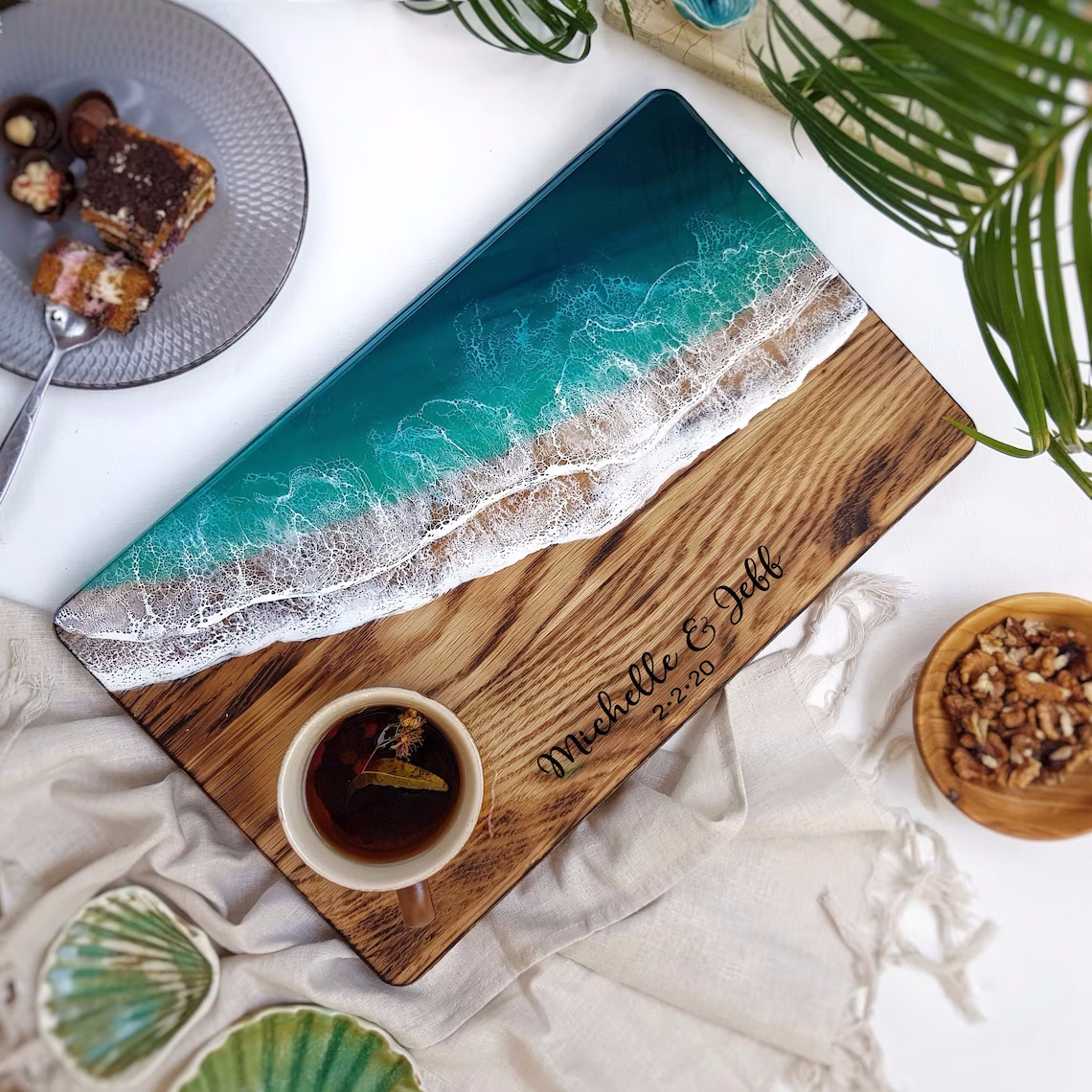 POSHJEWEL.bg Ви предлага ръчно изработен Кухненски борд от епоксидна смола и маслиново дърво.