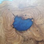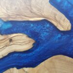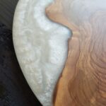 Кухненски борд изработен от епоксидна смола и маслиново дърво.