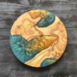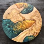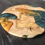 Кухненски борд изработен от епоксидна смола и маслиново дърво.