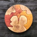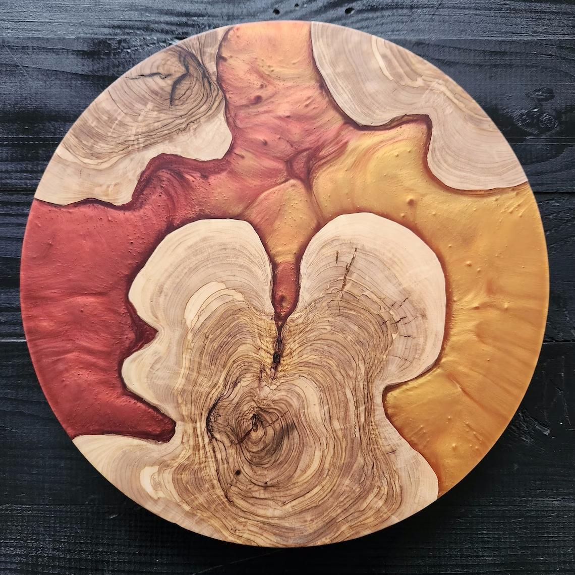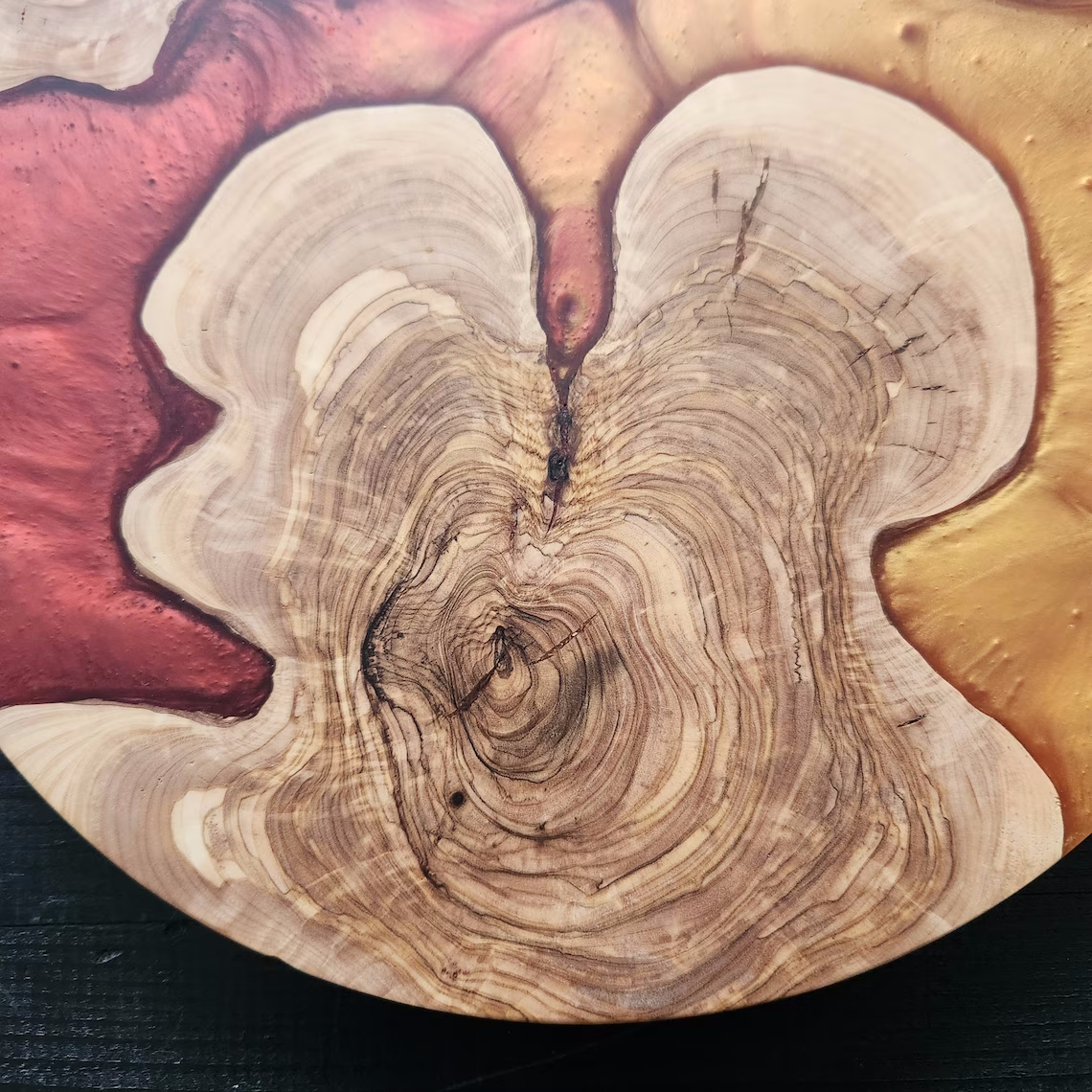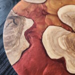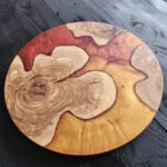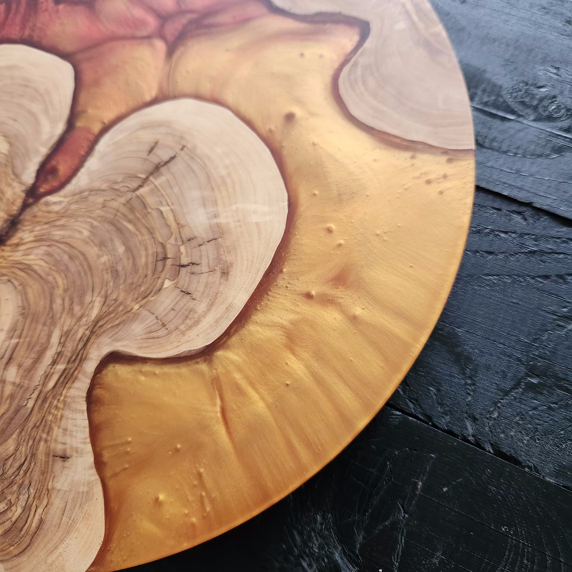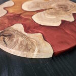 Кухненски борд изработен от епоксидна смола и маслиново дърво.