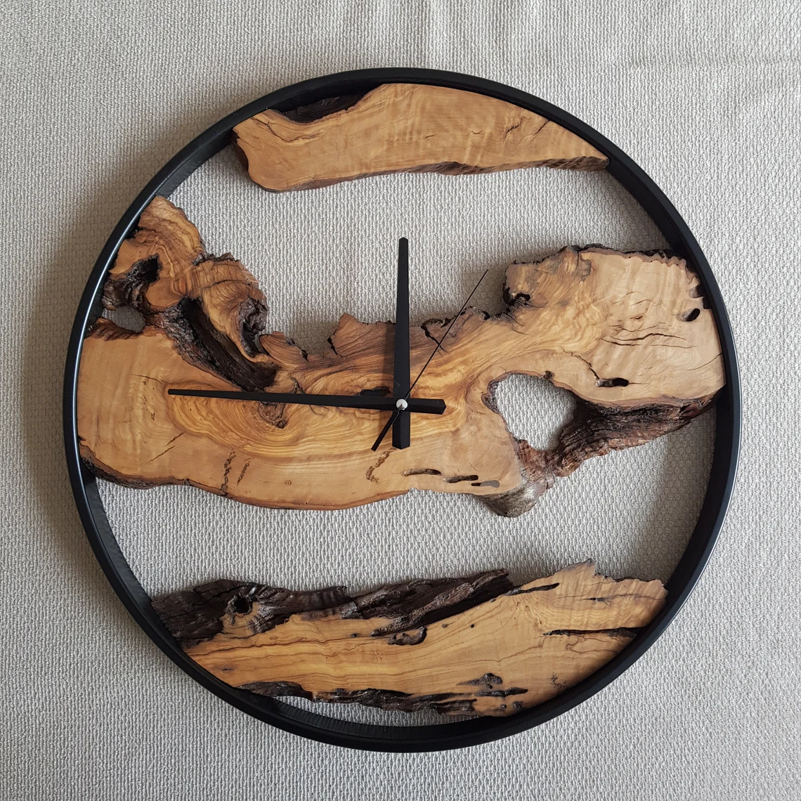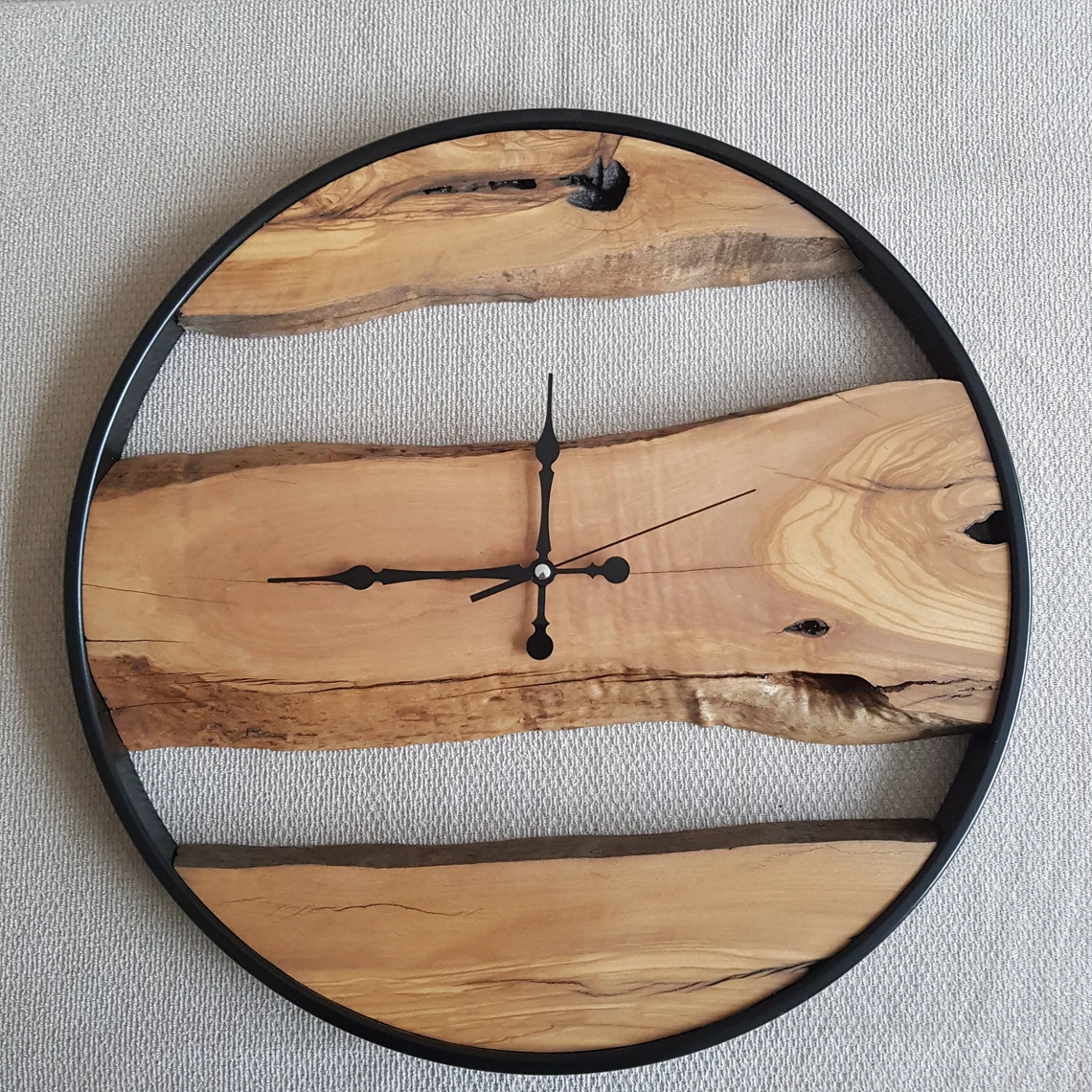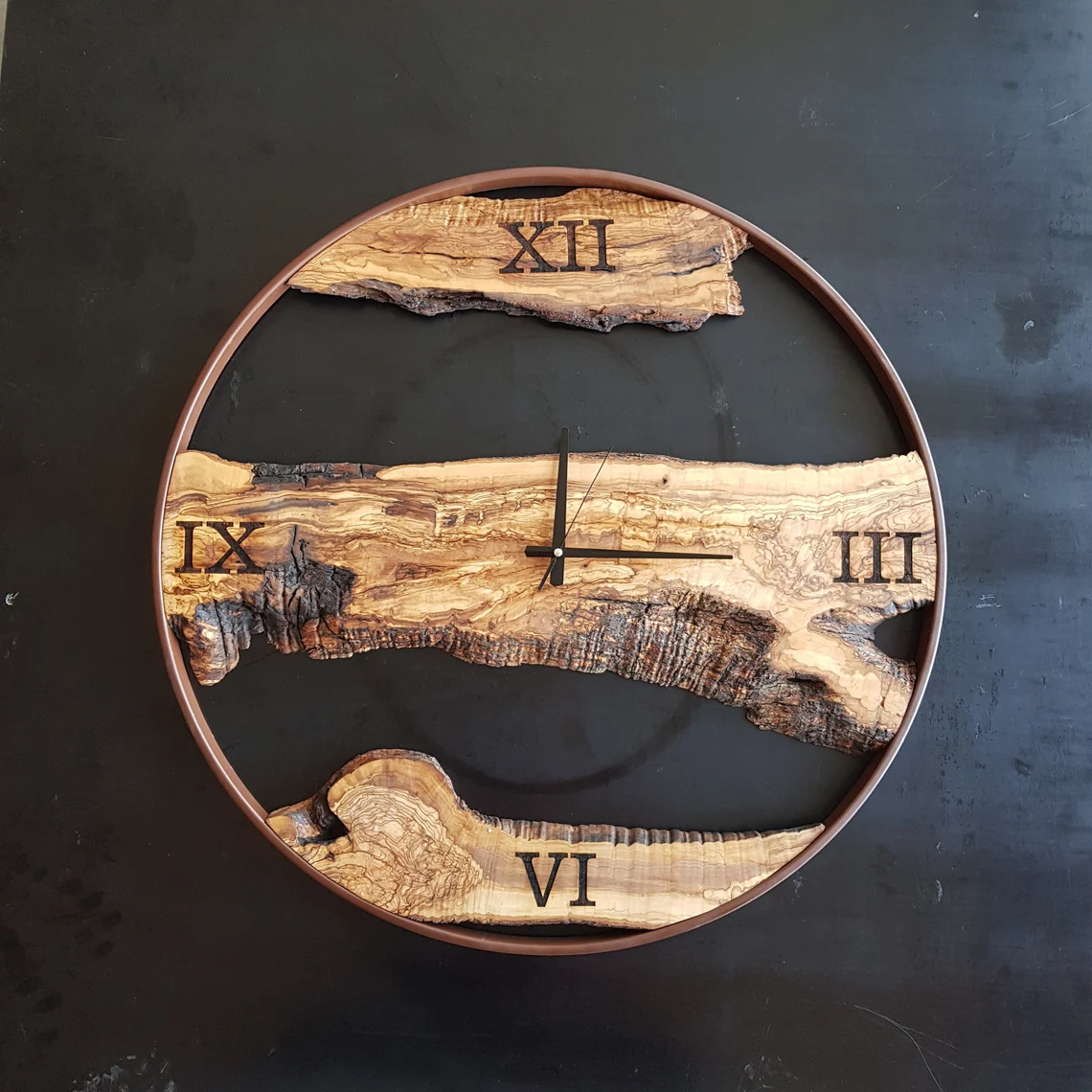 POSHJEWEL.bg Ви предлага изключителен Стенен часовник изработен от метал и маслиново дърво.
