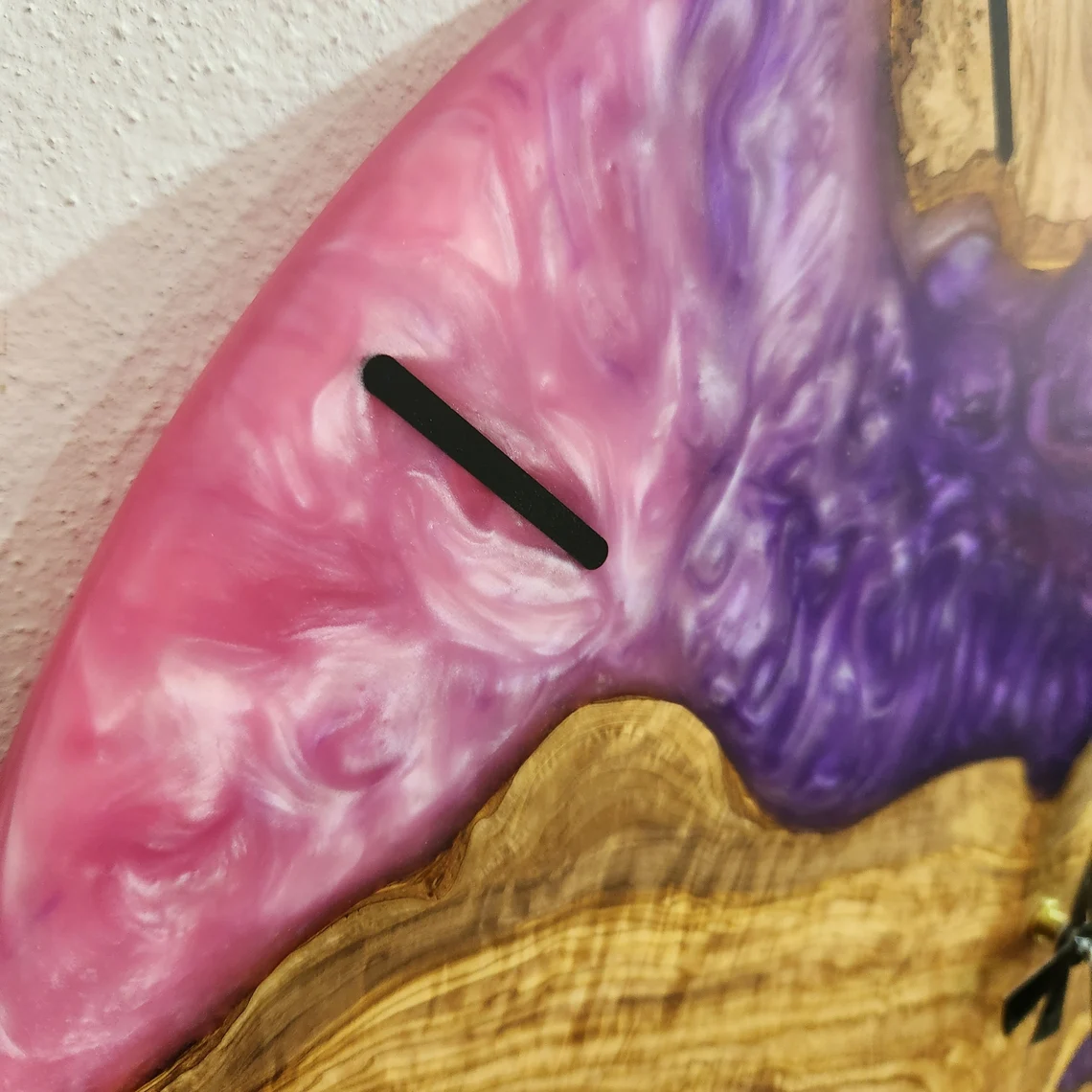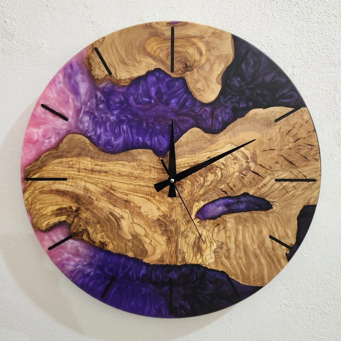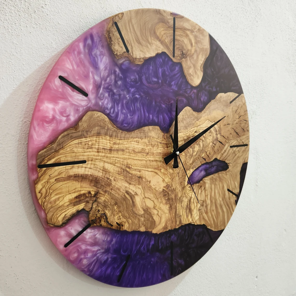 POSHJEWEL.bg Ви предлага изключителен Стенен часовник изработен от епоксидна смола и маслиново дърво.