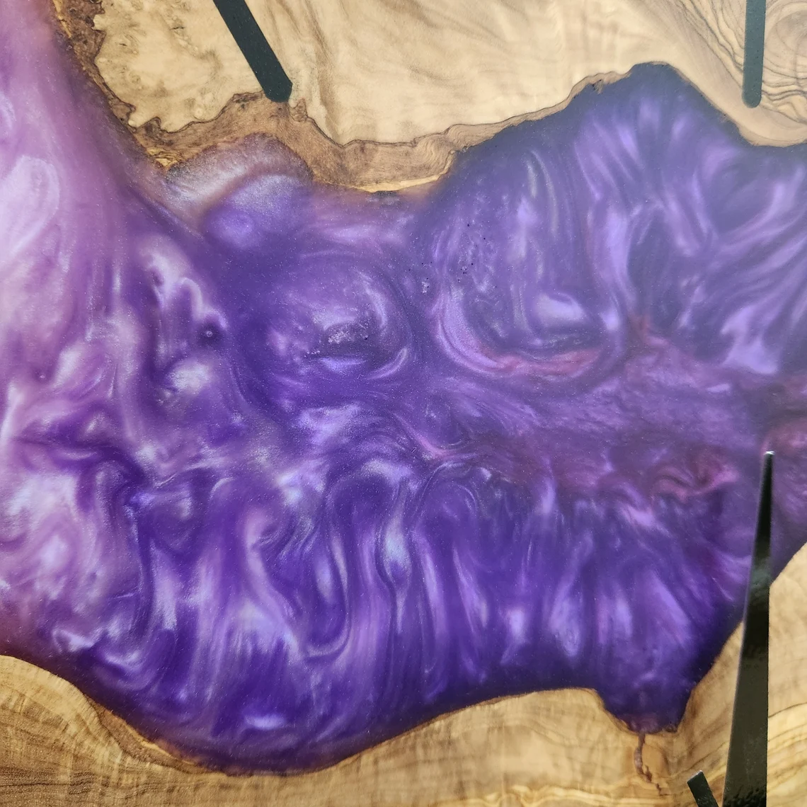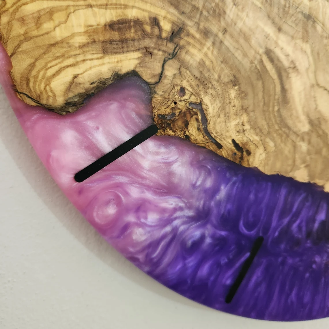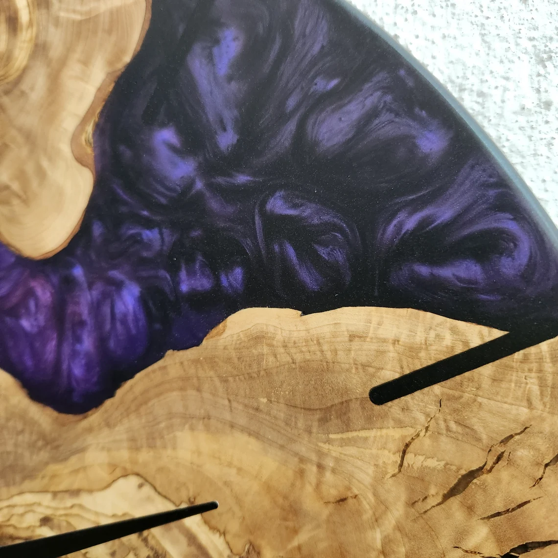 POSHJEWEL.bg Ви предлага изключителен Стенен часовник изработен от епоксидна смола и маслиново дърво.