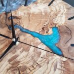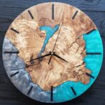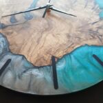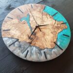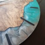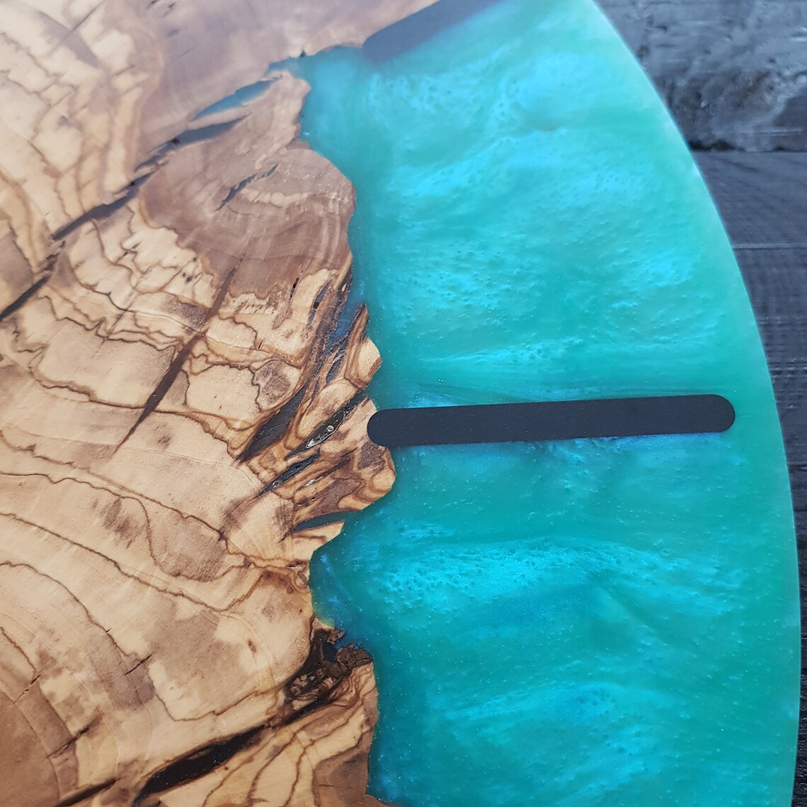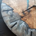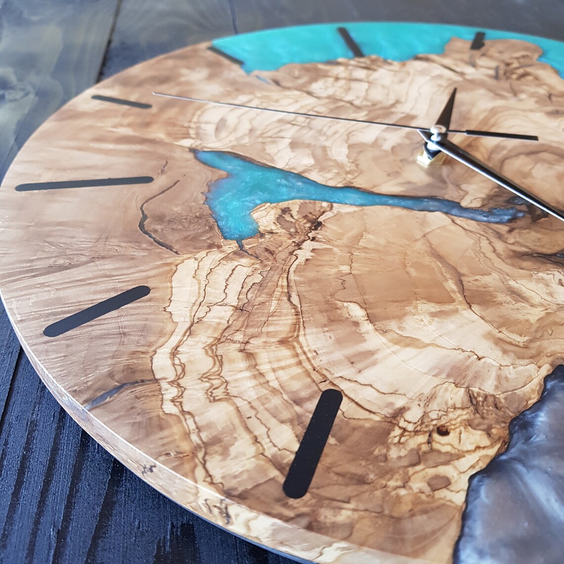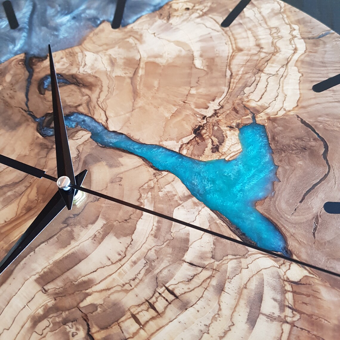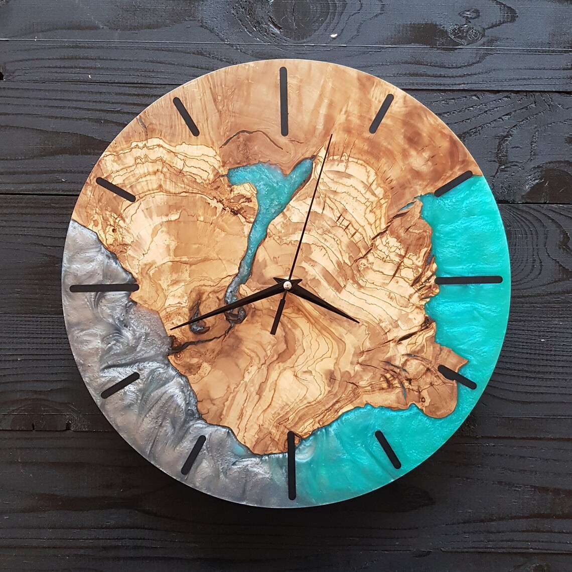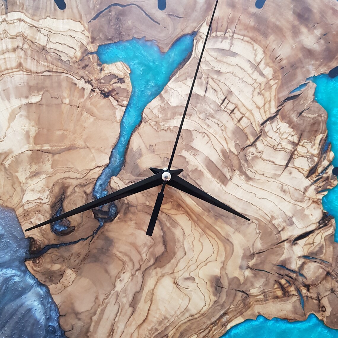 POSHJEWEL.bg Ви предлага изключителен Стенен часовник изработен от епоксидна смола и маслиново дърво.