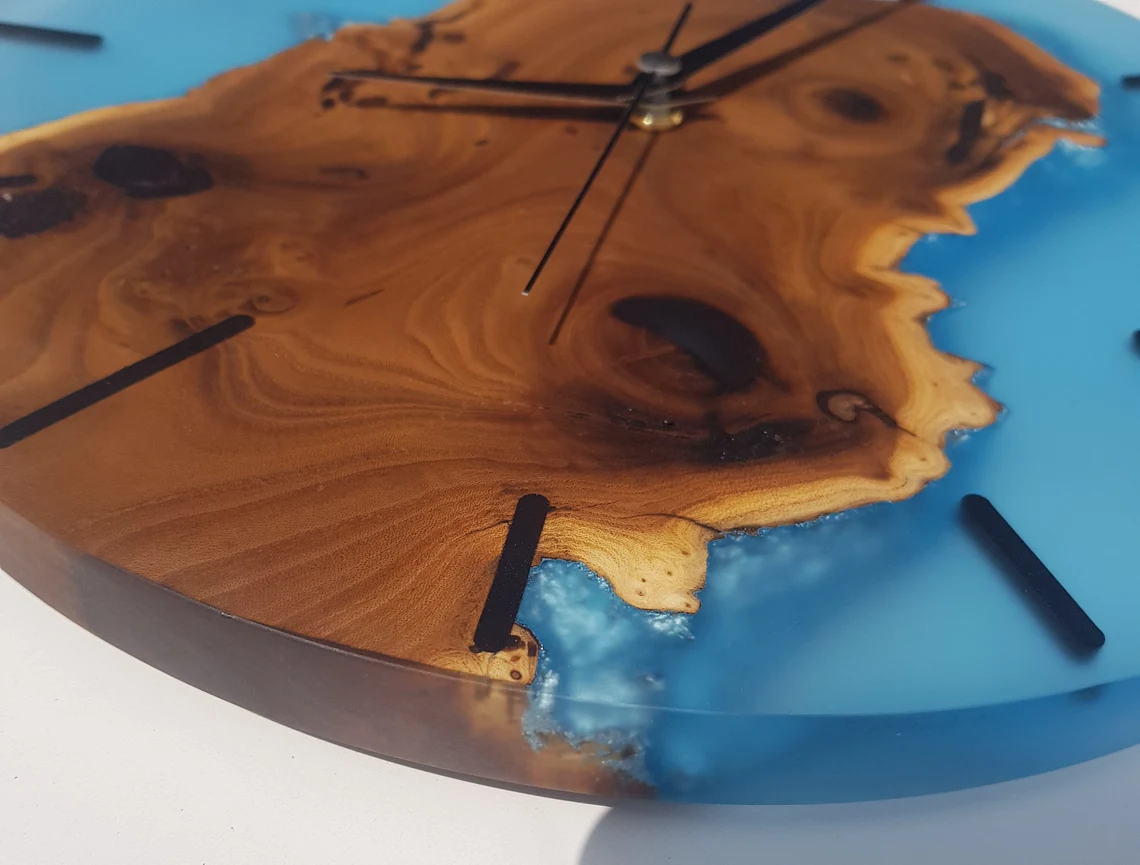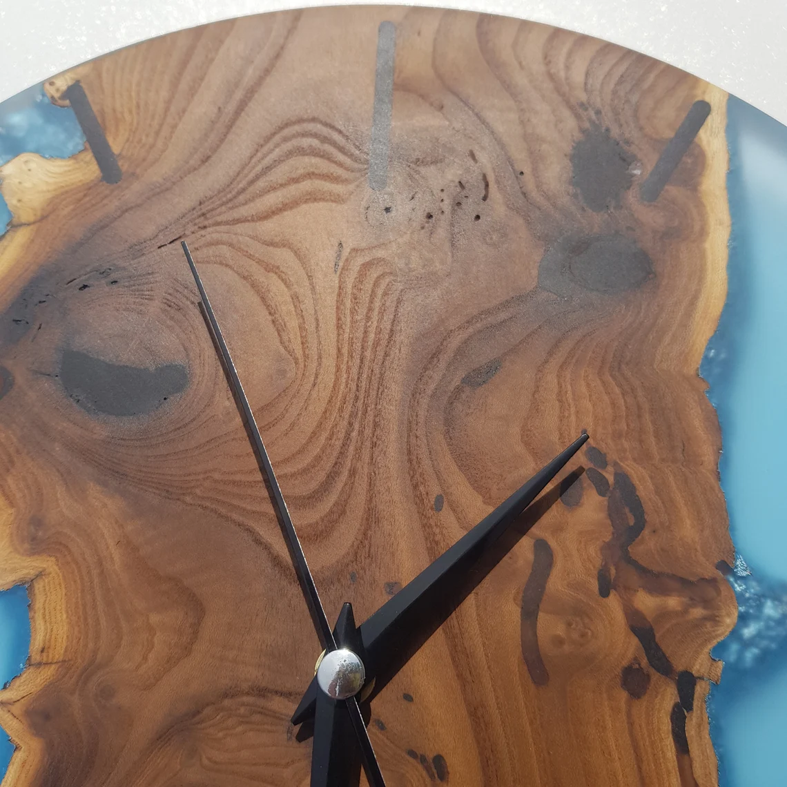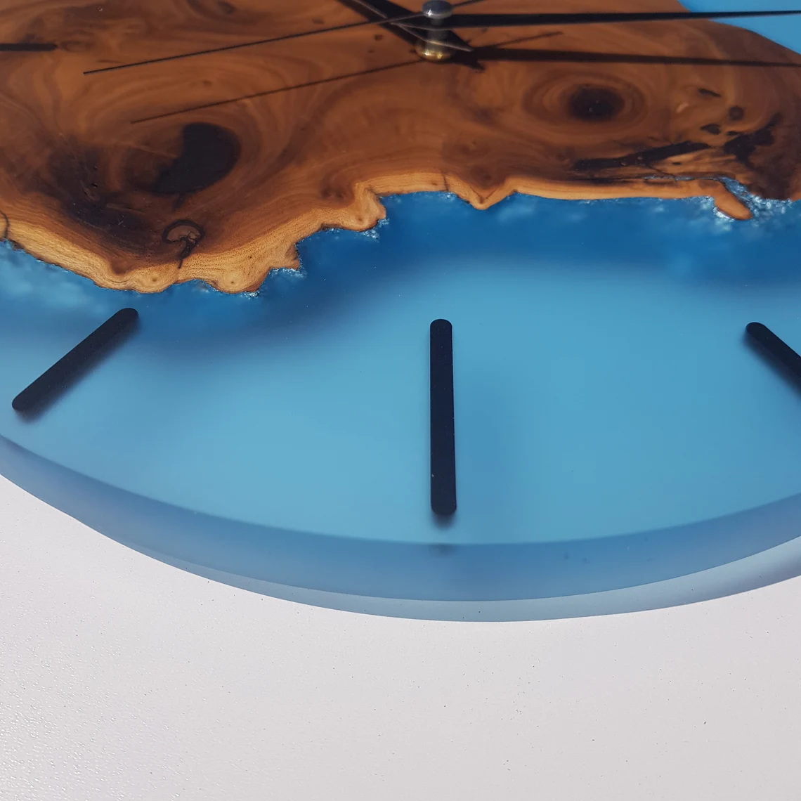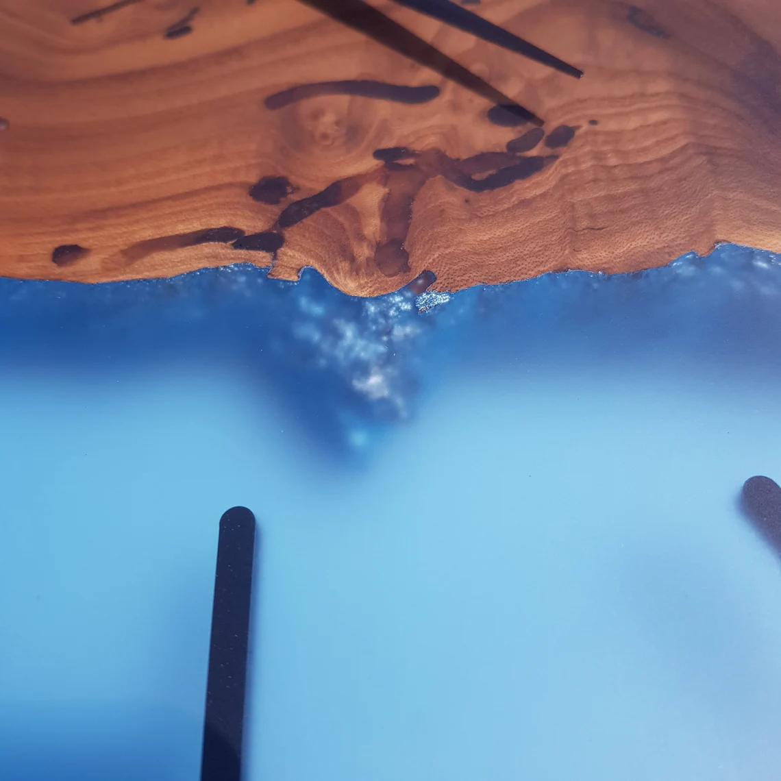 POSHJEWEL.bg Ви предлага изключителен Стенен часовник изработен от епоксидна смола и маслиново дърво.