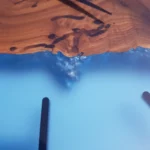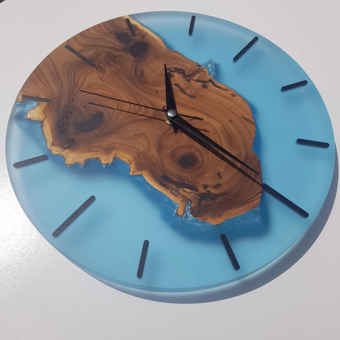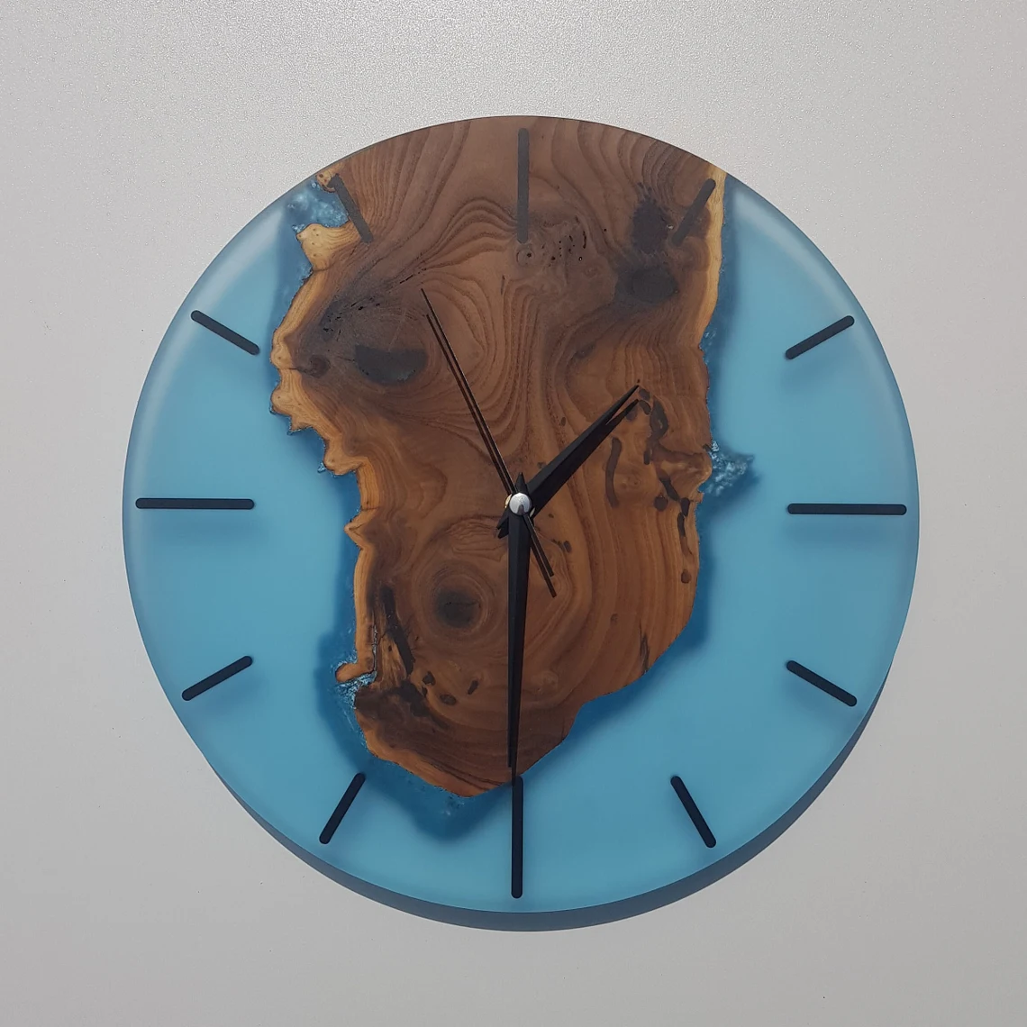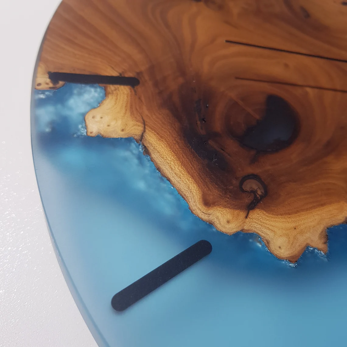 POSHJEWEL.bg Ви предлага изключителен Стенен часовник изработен от епоксидна смола и маслиново дърво.