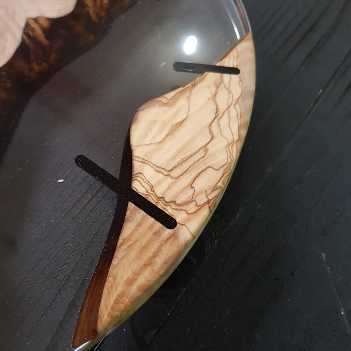 Часовник изработен от най-качествените материали епоксидна смола и маслиново дърво.