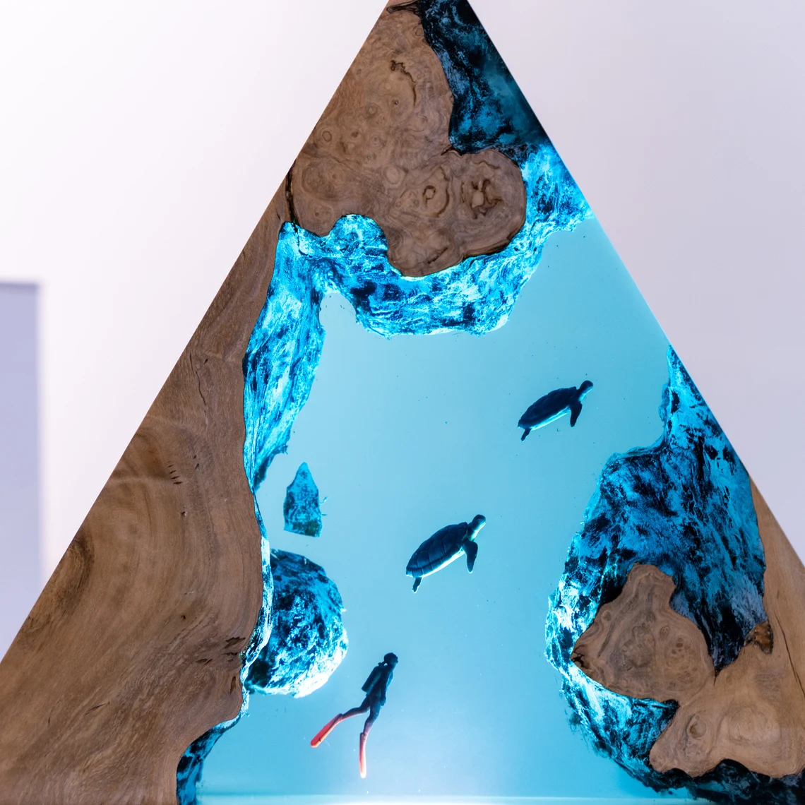 POSHJEWEL.bg Ви предлага ръчно изработенa Лампа от епоксидна смолa, маслиново дърво и фигурки.
